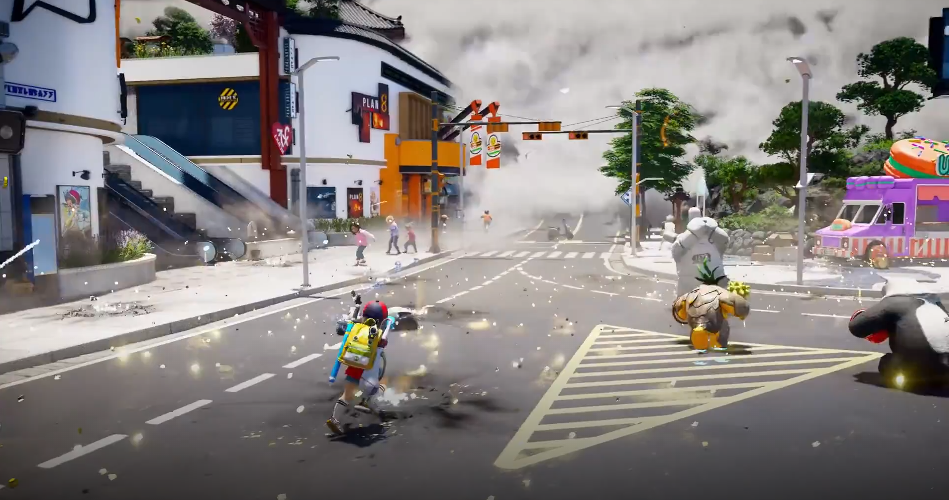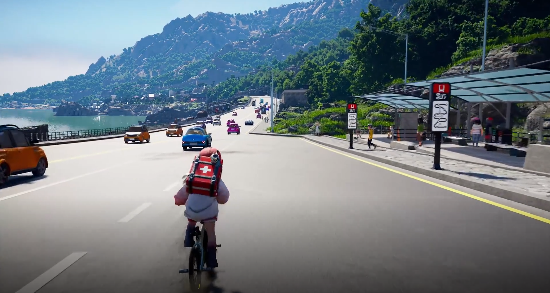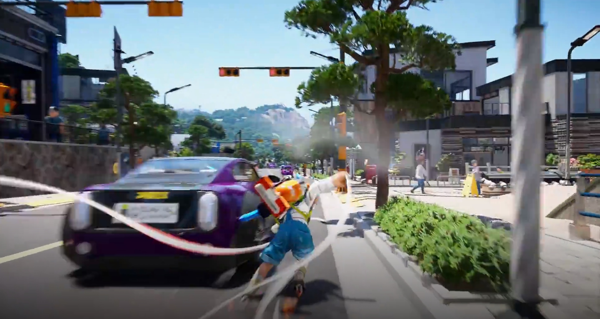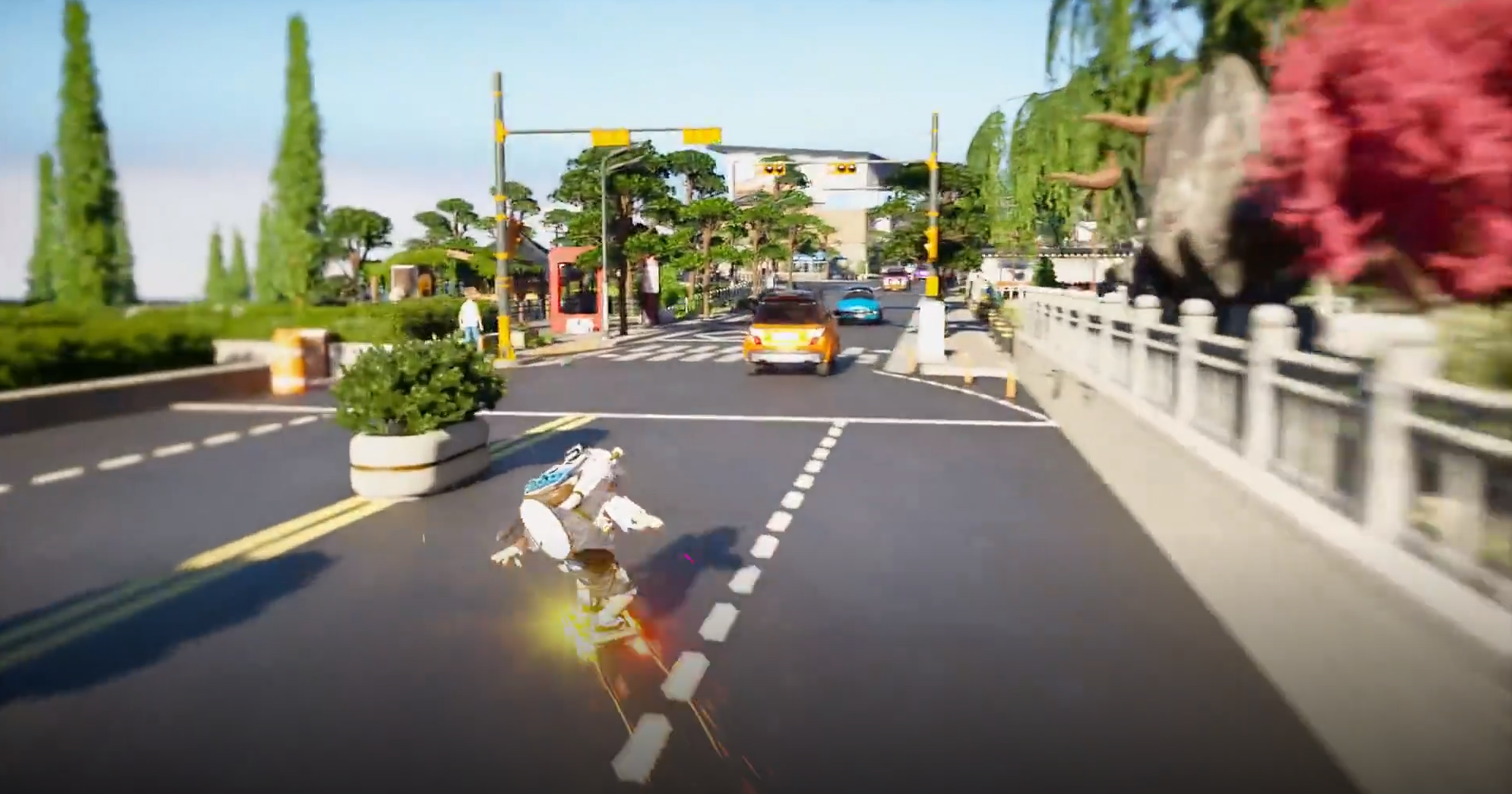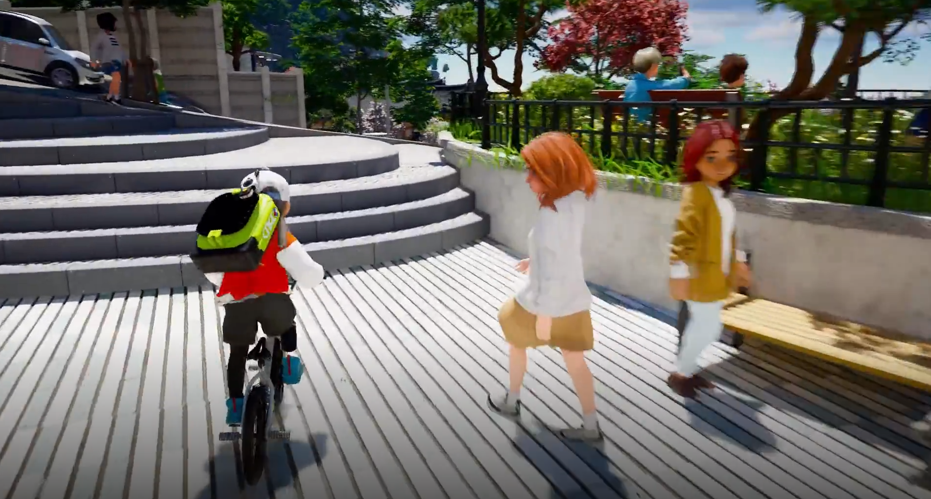 스크린샷을 기반으로 보자면 탈것이 주로 눈에 띄는데요. 처음엔 걷더니, 자전거, 그다음은 보드, 우산까지 다양한 탈 것에 대한 기능이 갖춰진 것 같습니다.