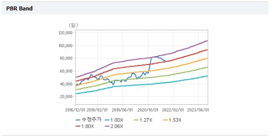 | ※ PBR이란 '주가순자산비율'로써, 자기자본을 총 주식수로 나눈 BPS 값과 주식의 가격을 비교한 비율로 일반적으로 1보다 낮다면, 저평가를 나타내고 1보다 높다면 고평가를 나타냅니다. |