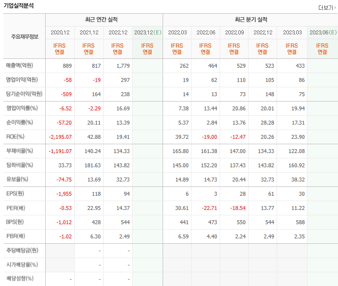 시총은 5,109억이며, PBR 3.61배, PER 17.86배 입니다. 코스피 343위에 랭크되어 있습니다.